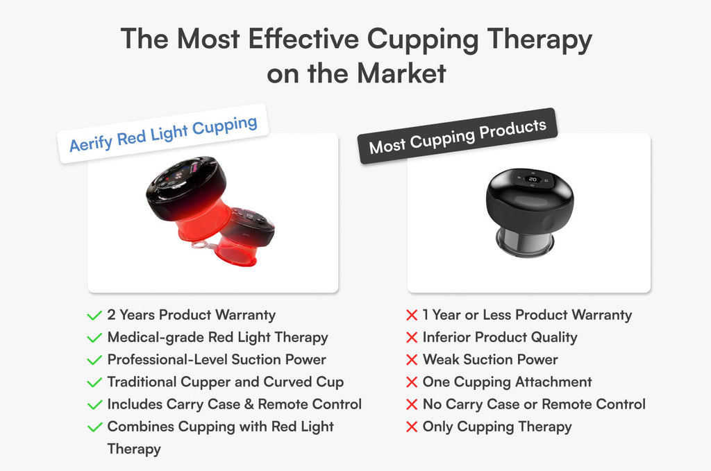 - Combines suction cupping with red light therapy for deeper relief